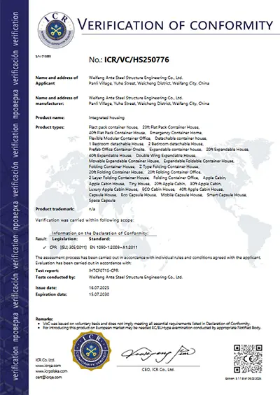 2024年にカナダに120ユニットのアップルキャビンを建設し、2024年に500ユニットのフラットパックコンテナハウスをロシアに輸出し、2023年にイラク政府と協力して800ユニットの避難所を建設し、英国に50ユニットのフラットパックコンテナハウスを建設しました。